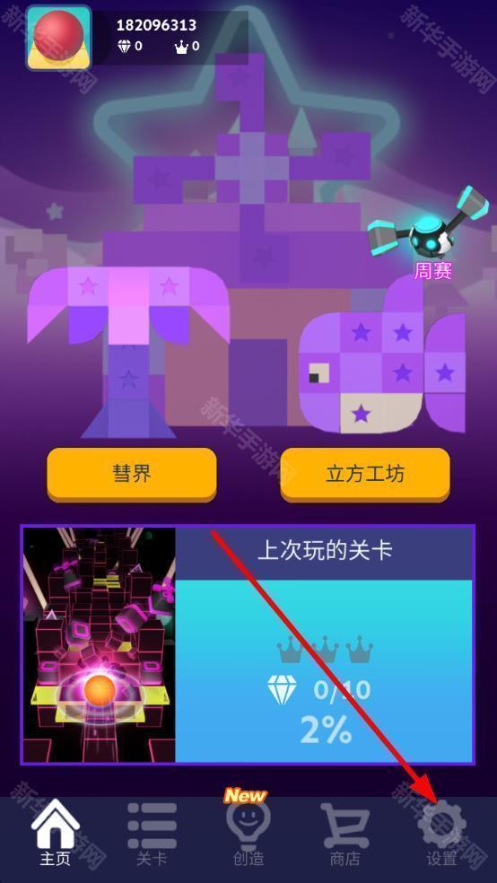1、打开滚动的天空游戏,点击主界面右下角设置图标进入设置界面。