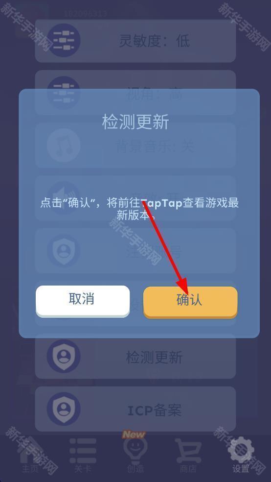3、在弹出的检测更新提示框里,点击确认前往查看并更新游戏。