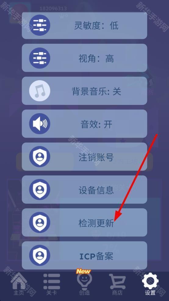 2、在设置界面中找到并点击检测更新选项,弹出更新提示框。