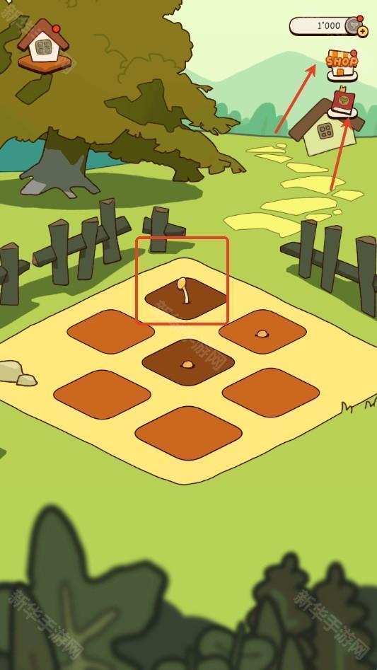 7、右上角有商店、蔬菜图鉴、等待一段时间,种子已经发芽了