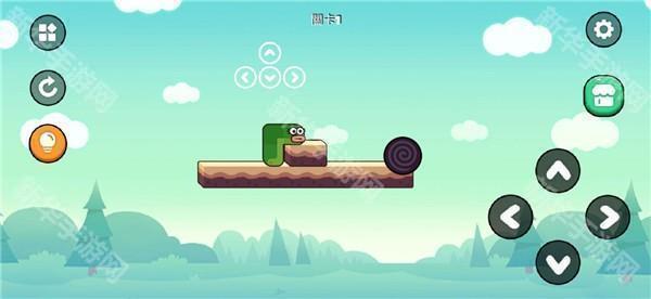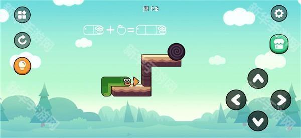 这一关先向右,头抵到边缘之后向上直到立起来,再向右吃到苹果,变长了就不会掉下去了,继续向右抵达终点;
