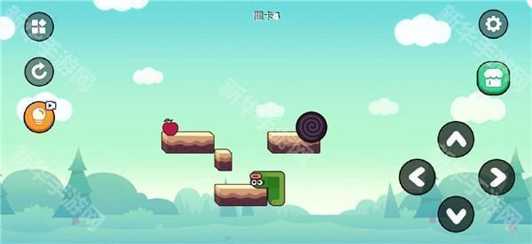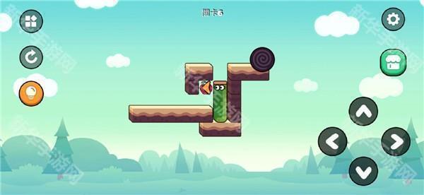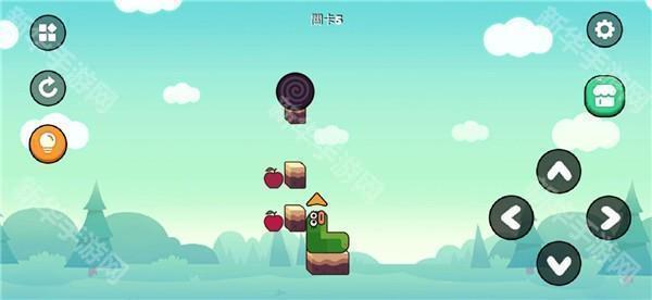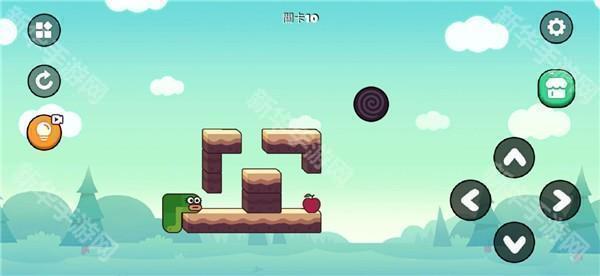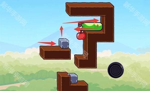 往前移动,到达边缘时往下走。先不吃苹果,先往左边移动,在里面跳转方向出来后再吃苹果。吃掉苹果后,往黑洞那里移动,就能完成关卡。