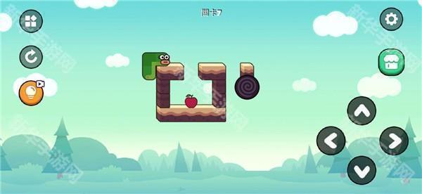 1、移动贪吃蛇,借助左侧的石头和苹果将右侧的石头推下去,然后吃掉苹果