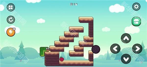 1、先贴墙往上走,然后转回来下去吃苹果,苹果要先吃最下面的那个,然后立马往右转,顺着墙往上爬直到竖起来