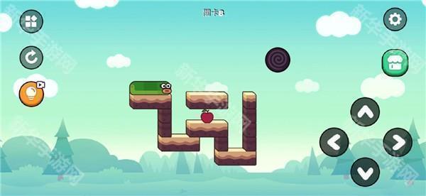 2、往右走去吃第三个苹果,吃到了之后往左拐,然后往上走两下,右转两格,往下再往左,再顺着墙往下走,直到走到黑洞里即可通关