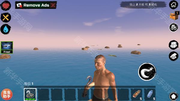 3、在这里收集资源建造自己荒岛房屋,收集食材求生,扩大木筏,警惕危险。
