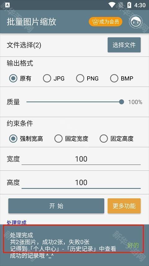 点击“开始”按钮,等待处理完成(进度条显示实时进度)。