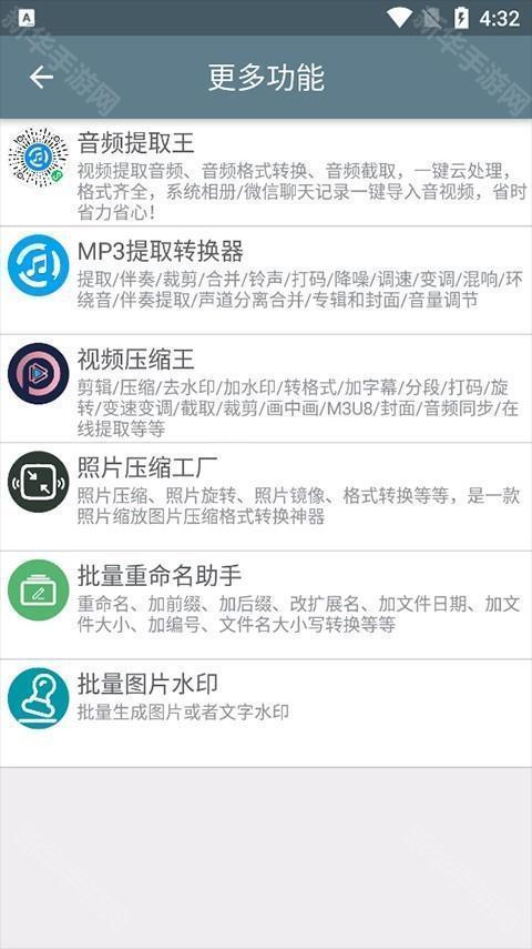5、除此之外,点击更多功能软件内还有音频提取、视频压缩、批量图片水印等功能。