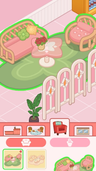 4、收集金币购买装饰道具,自由布置餐桌、屏风、收银台等物件,自定义茶楼布局。