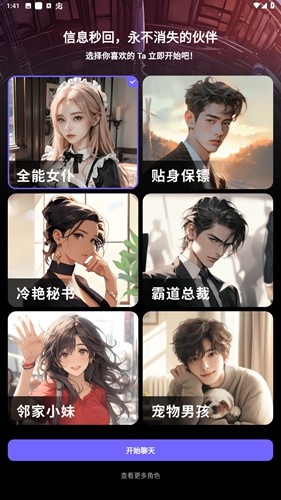 这款软件不仅仅能够和和预设的角色进行对话,还可以创造自己喜欢的角色,比如动漫角色和oc等等,让我自己能自由设定角色的性格,他们的情感丰富,并且句句有回应。