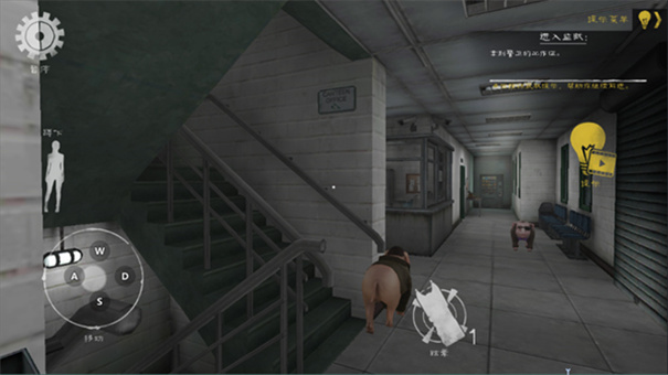 4、首先上到3楼去找到这头可爱的小猪,那电击棍电晕他哈哈,然后就会得到一个警官证