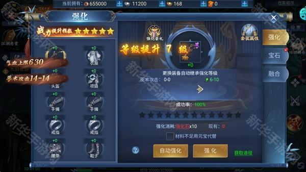 通过消耗强化石强化装备可提升战力,可在强化概率达到100%时能稳定提升