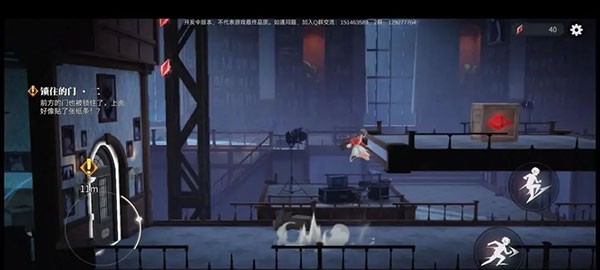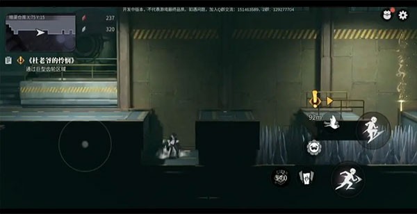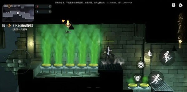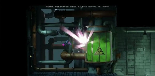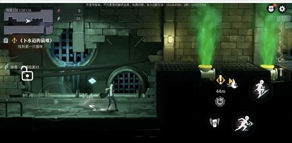 剧情结束往左走,跳到移动平台上即可被它带到上方,小心下面黑色怪影,继续乘坐移动平台往左,来到下水道井盖旁边,进入下水道。