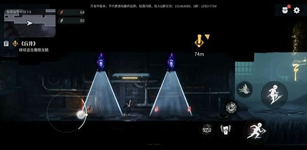 继续往右,使用特殊攻击清除路上的魔物群,使用冲刺对付单个的魔物,继续往右。