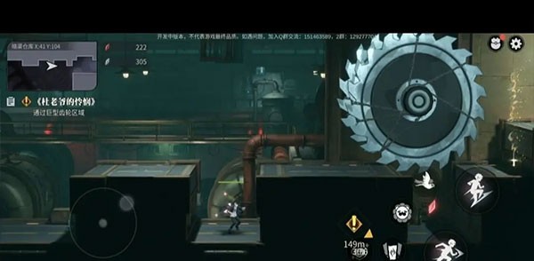 往上走有宝箱,不想收集也可以直接往右走,小心躲避齿轮的攻击。