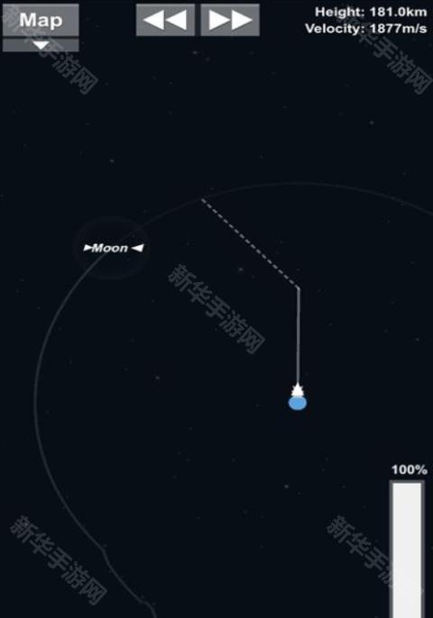 4、然后打开地图观看火箭的轨迹有没有接近月球的轨道,然后把用完的四个氮气桶脱离;