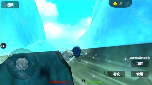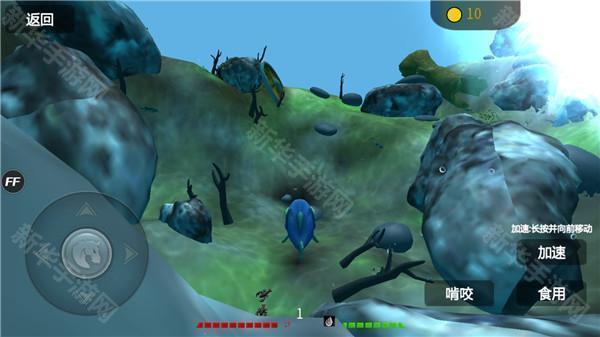 4、可以找一处地方蛰伏起来等待鱼类经过点击加速猛冲上去即可吃掉