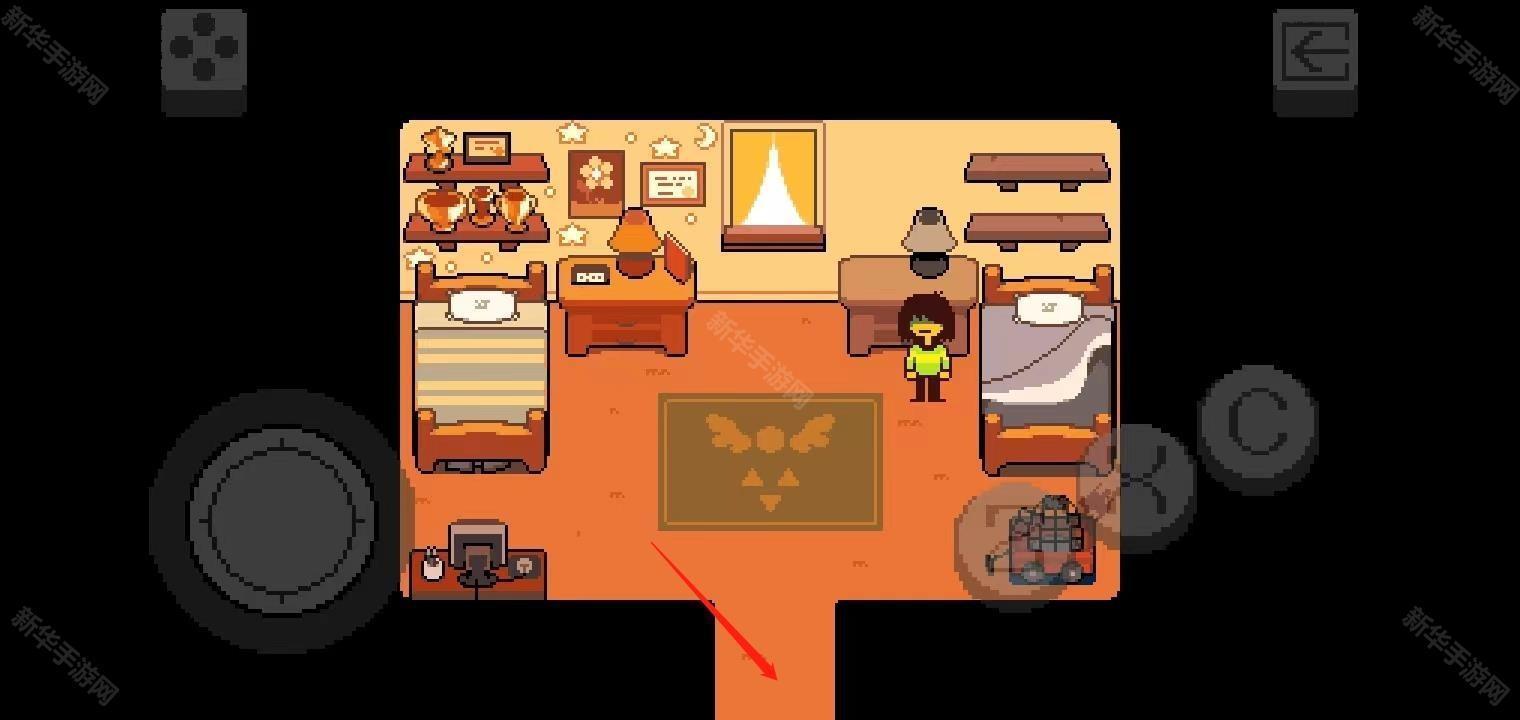 4、之后就正式进入游戏了,托丽尔喊着克里斯(Kris)的名字,让他上学不要迟到了,(按“乙”键进行下一步),玩家需要控制Kris让其起床出门去学校;滑动左边的控件让Kris走到箭头指示的那里,然后就会切换下一个场景;