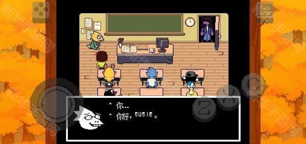 6、克里斯到学校时,老师艾菲斯(Alphys)已经布置了小组作业,并且要让他的学生每两个人组成一组。当然克里斯到的时候,所有同学都已经有了自己的同伴了。在这里,玩家需要找到第一排最左边那个同学那里,按“乙”键进行对话;然后又来了一个人;