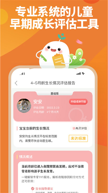 1.0-6岁婴儿生长发育评估,5大领域的图形分析,帮助家长全面了解宝宝的生长发育情况。