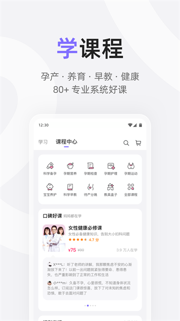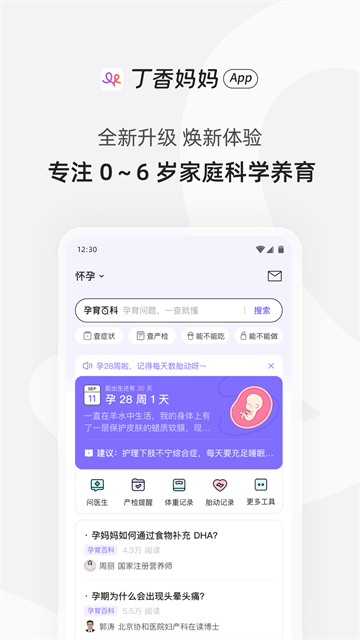 【丁香妈妈】这是一款母婴生活类型的软件,这款软件由“观澜网络”公司出品的软件,这款软件是非常科学的怀孕和育儿平台,帮你一站式解决在养娃过程中的各种问题,我们提供全面的优质母婴养育课程,包括基于导航的怀孕科学指南。如果你遇到任何问题,你可以很容易地按阶段找到它们。我们还提供大量高质量的妇幼保健产品,通过严格的可追溯性和权威检查,确保用户可以放心购买。
