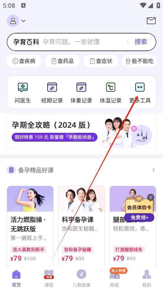 1、打开丁香妈妈App并登录软件,点击更多工具;