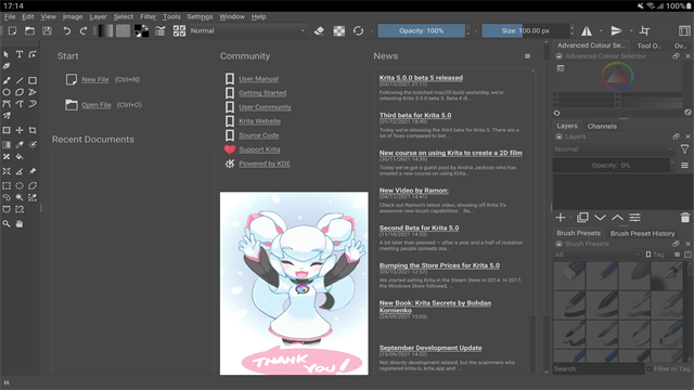 【Krita】这是一款手机绘画类型的软件,这款软件由“Stichting Krita Foundation”工作室,内置100多个预设画笔,支持压力感应、倾斜感应和多级图像稳定。使用过PS的用户可以很容易地开始使用,它是完全免费和开源的,允许用户在手机上创作精美的画作,而无需登录。用户可以直接创建新图像或打开图像进行操作,还可以在网上下载自己喜欢的笔刷进行导入,喜欢的快来试试看吧。