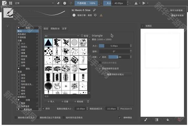 1.有9个内置的画笔引擎,每个引擎都模拟了一个特定的功能,如颜色模糊、轮廓着色、粒子甚至过滤器引擎。