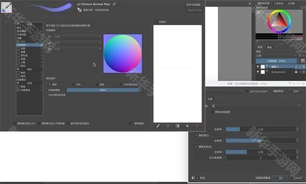 5.具备制作切线空间法线贴图所需的图层混合模式、配套滤镜和蒙版、笔身倾斜传感器等。