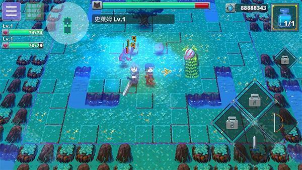 游戏的玩法简单有趣,是非常经典的rpg冒险,玩家要做的就是消灭敌人,打开下一层的大门,玩家死亡后会从自己的家园重新开始,同时地牢的挑战也会发生变化。