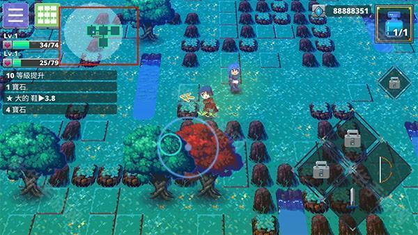 7、召唤伙伴后进入探索区,遇到怪物使用右下角的剑或弓进行攻击;