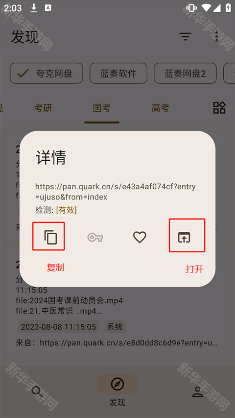 6、复制链接的话就让前往对应网盘app内打开,直接打开资源链接可以在线保存至目标网盘内