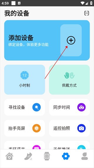 5、周围附近搜索设备,或者右上角扫一扫,扫描手表上的二维码,进行绑定。