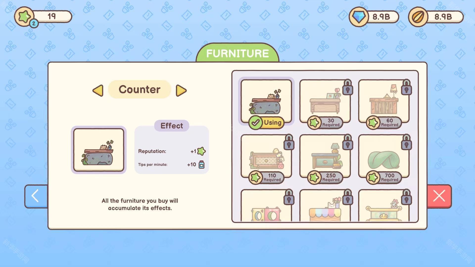 2.及时了解新功能,熟悉这些辅助效果,添加新的设施,扩大店铺面积,了解各种策略如何影响您当前的酒店经营。