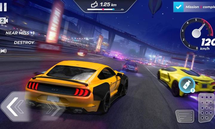 3.高速穿过城市街道,同时避开警车,改善换档时机,展示你的街头赛车技能。