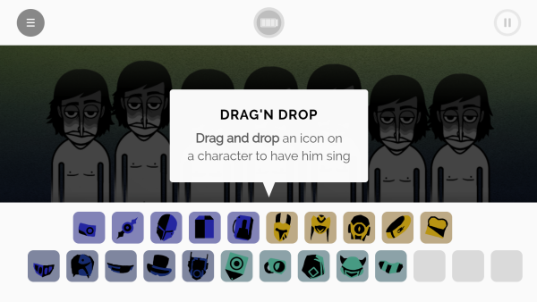 游戏的玩法简单有趣,玩家可以通过拖动下面的方块到角色的身上,他们就会发出不一样的歌曲,分为人声的BBOX,并且还有鼓点和吉他声音等等,快来试试看吧。
