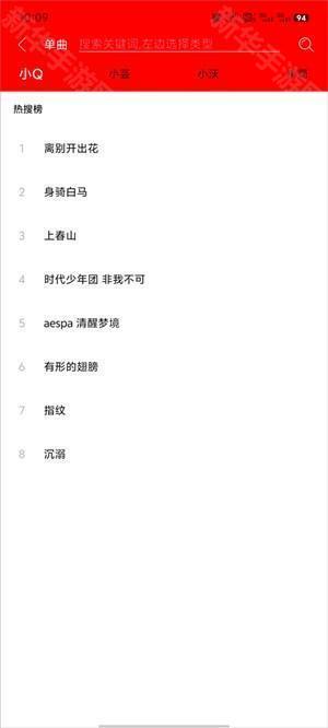 2、我们只需在放大镜按钮里输入相应的歌手名即可找到其所有的音乐作品。