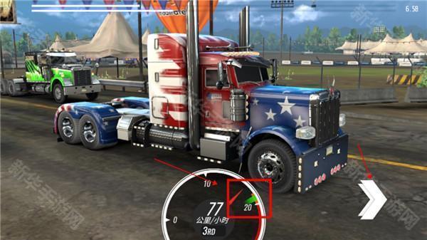 游戏的玩法简单粗暴,就是驾驶着自己的大卡车前往终点即可,并且获得第一名的成绩,就能获取大量的奖金,这些奖金可以让你自由改装卡车,从涂装到引擎应有尽有,快来试试看吧。