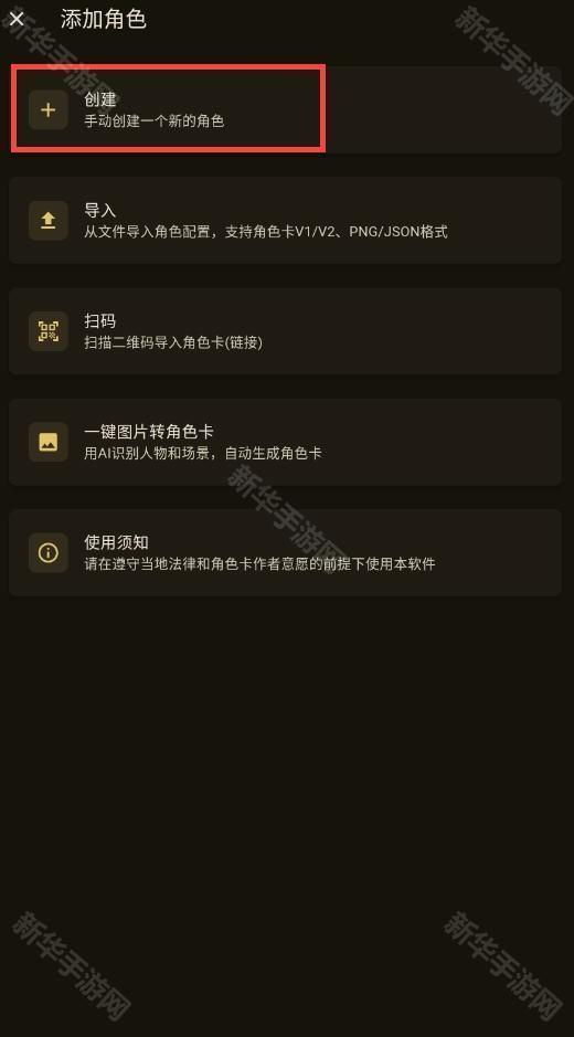 4、也可以在角色板块中选择创建或者本地导入;