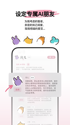 1、用户通过手机号登录且经过前期的简单设置和记录后便可以选择app为你生成的专属AI