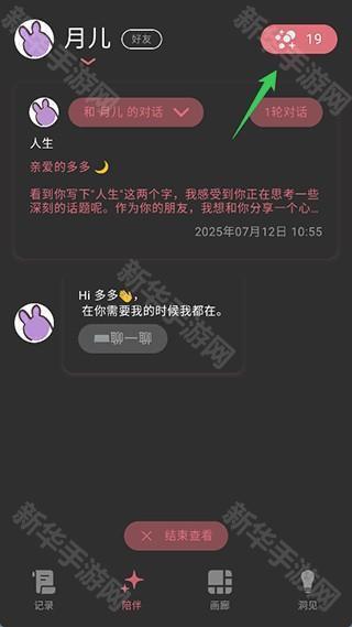 2、然后进入陪伴界面下点击右上角的数字小图标
