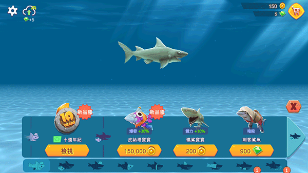 6、获得的奖励你可以用来解锁各种类型的鲨鱼;