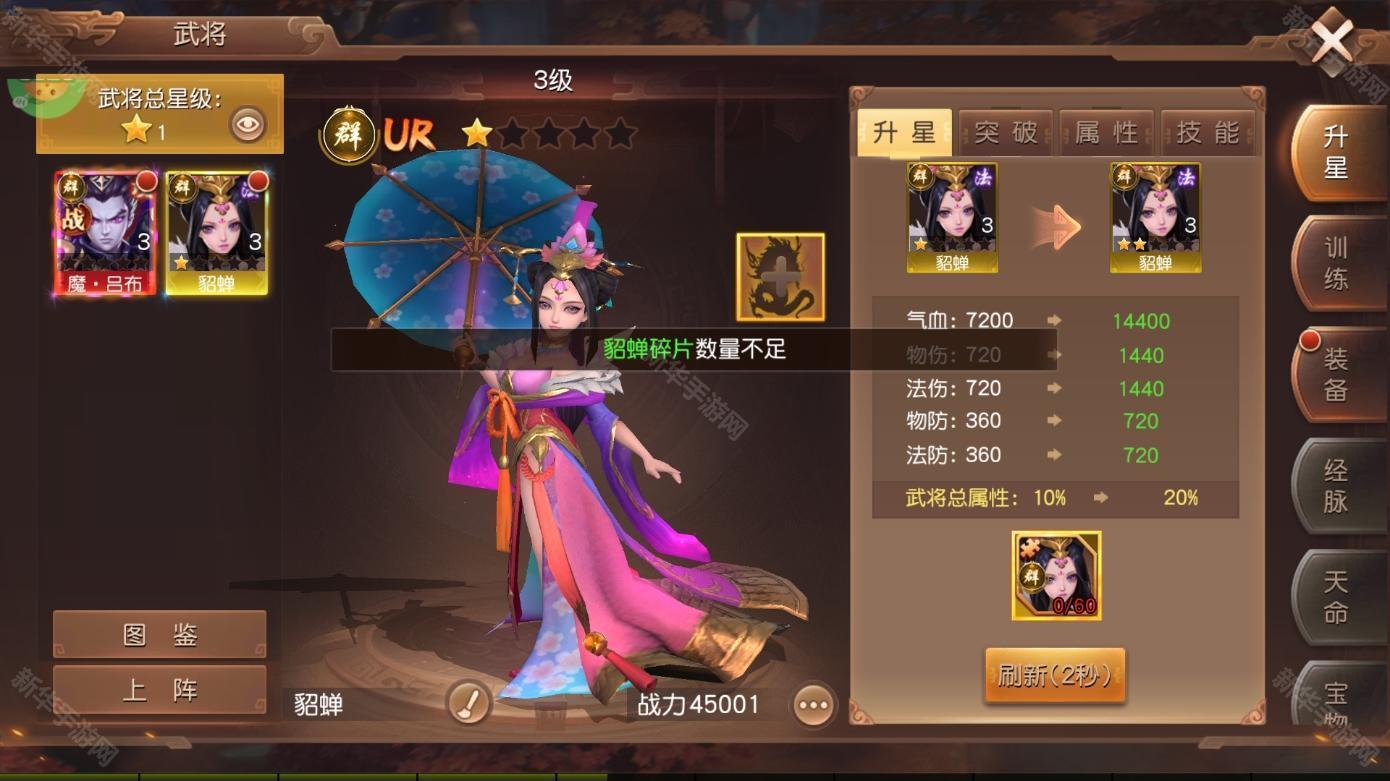 升级:使用经验书提升名将等级,解锁更多技能和属性。