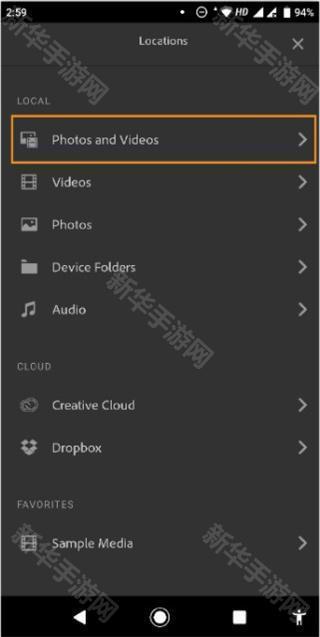 3.导入素材:用户可以从手机相册、lightroom、creative cloud等来源导入视频和图片素材。