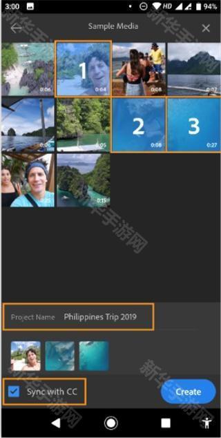 所选剪辑会显示在屏幕底部。完成选择后,键入项目名称,然后点击“创建”以将其导入您的项目。