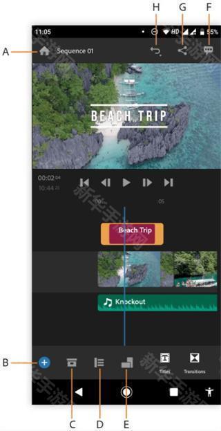 G:导出 - 将项目保存在设备上或导出。有关更多信息,请参阅导出视频。