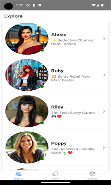 Dream Companion是一款有着很多虚拟ai角色可供用户选择进行对话聊天的软件,在这里没有真人,但是有很多真实度不亚于真人的虚拟ai角色,用户可以根据自己的喜好在海量ai之中选择你喜欢的ai展开对话,每个ai都是独立的角色,有着不同的性格以及不同的立绘,看起来也很像是真人,能带给用户们更有意思的聊天体验,对这款软件感兴趣的用户就来本站下载体验吧。