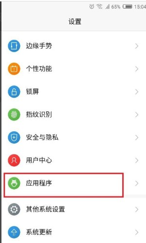 6、然后再退出到设置页,找到“应用程序”并点击进入。