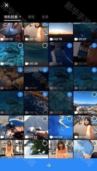 1、添加素材时长按并滑动,就能实现连选,省去了逐个点击选取素材的时间。