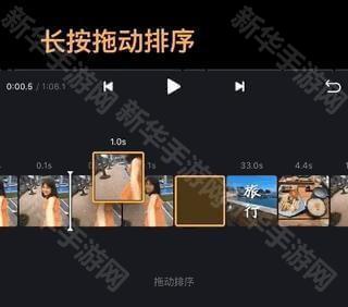 2、长按视频片段,就能前后拖动素材进行排序,很符合直觉的设计。